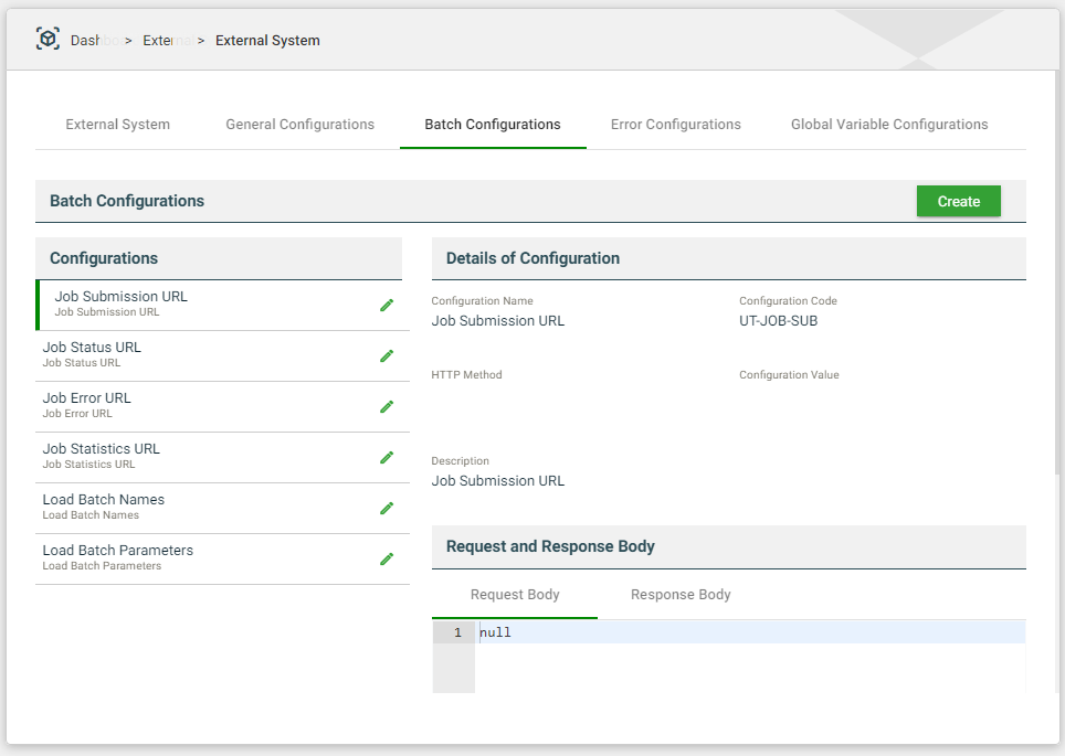 Defines the configuration used to get the status of a submitted batch. The batchJobId from Job Submission URL configuration is used to retrieve a response on whether the batch job status ran successfully.