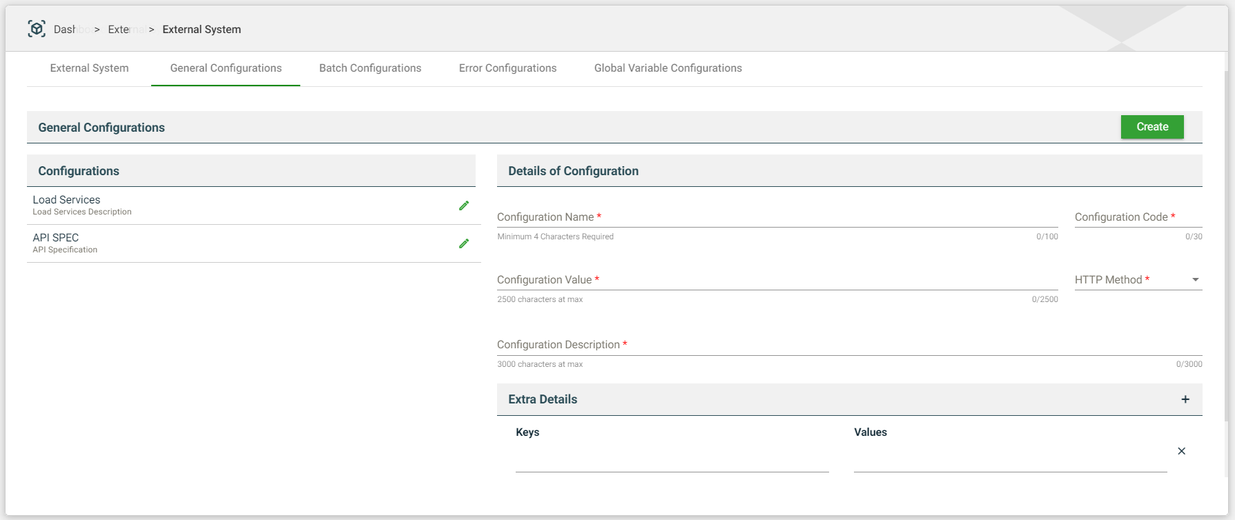 The following configurations are only displayed for existing external systems or after creating a new one.