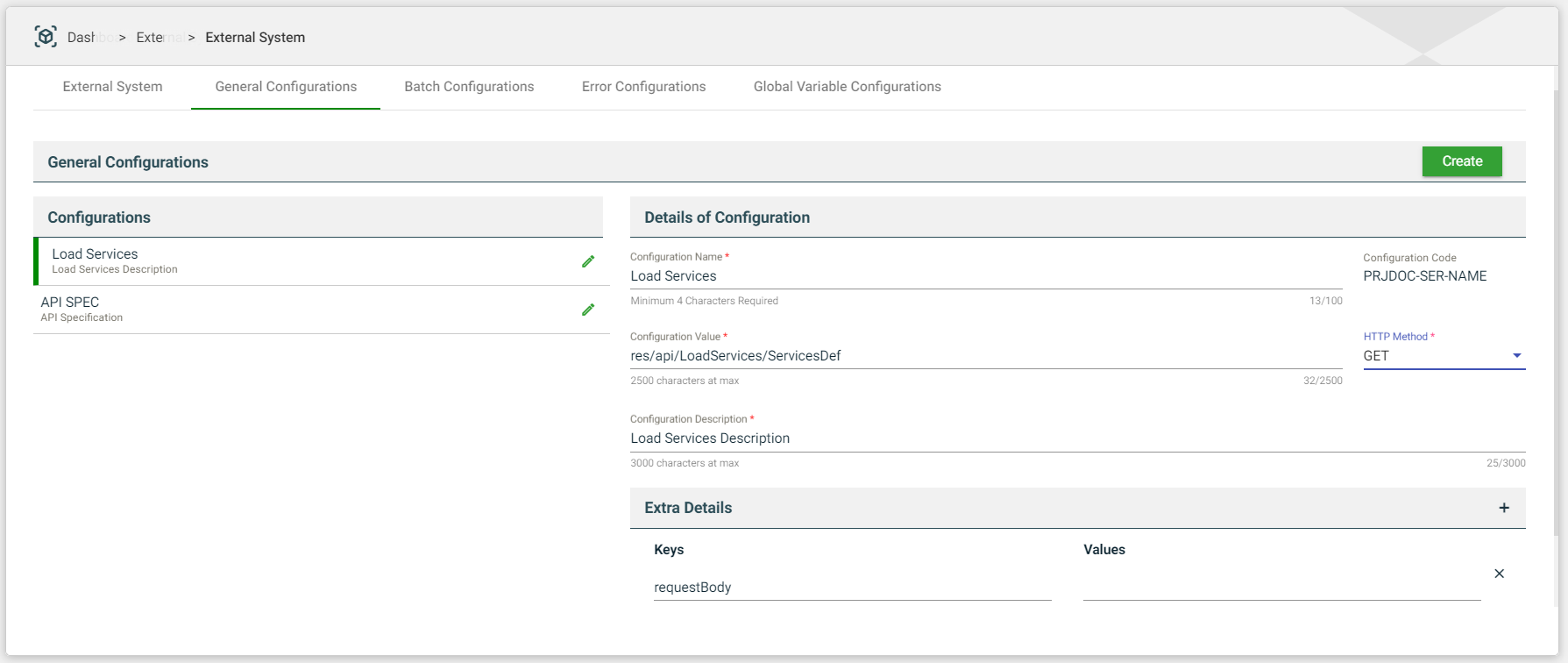 General configurations are configurations defining the methods in fetching services from your server for creating Services.