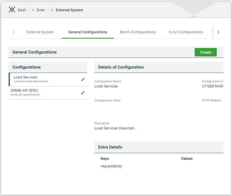 | Extra Details | Defines additional details for the general configuration in key-value pairs format. |