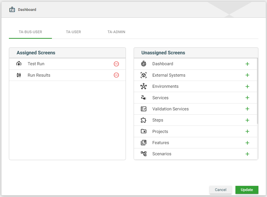 TA-BUS-USER— By default, a business user has access to the Test Run and Run Results modules.
