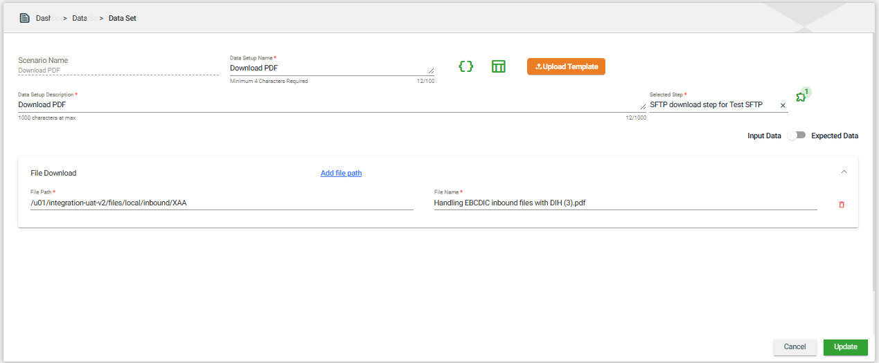 If your step is of Upload type, you will see a File Download section instead of the Request Body. The File Download section includes the following fields:\