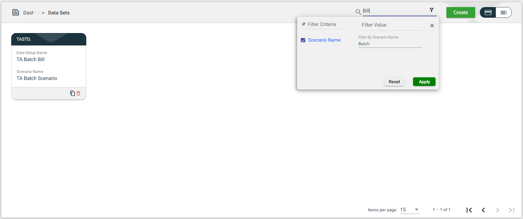 to open the Filter Criteria for Scenario Name. Only the datasets with a configured scenario that matches the provided keyword or name will be displayed in the view.