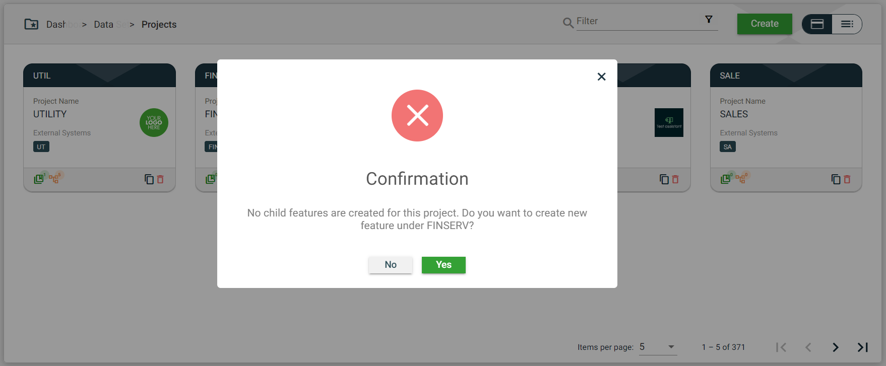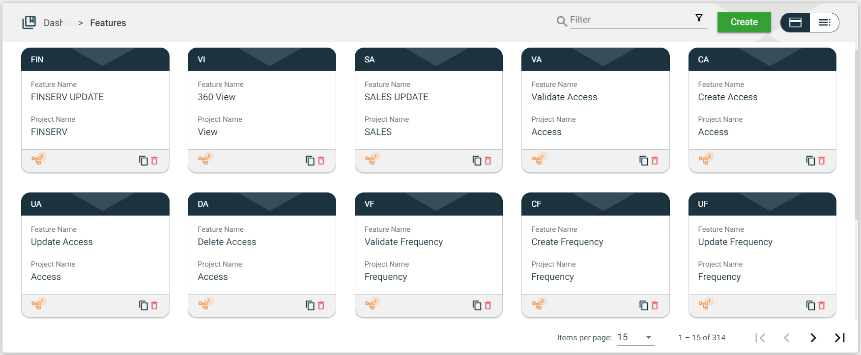 on the card view or on the 0Features Count column value in the list view. This option will automatically connect the feature to your project.