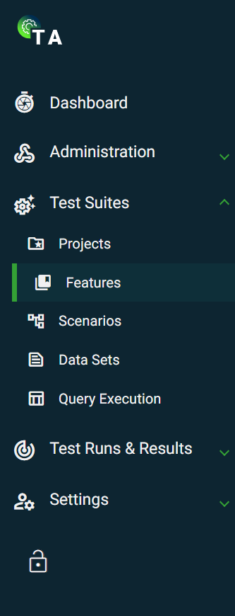 - In Test Suites > Features, click Create. This option will have a Select Project dropdown list that requires you to select an existing project.