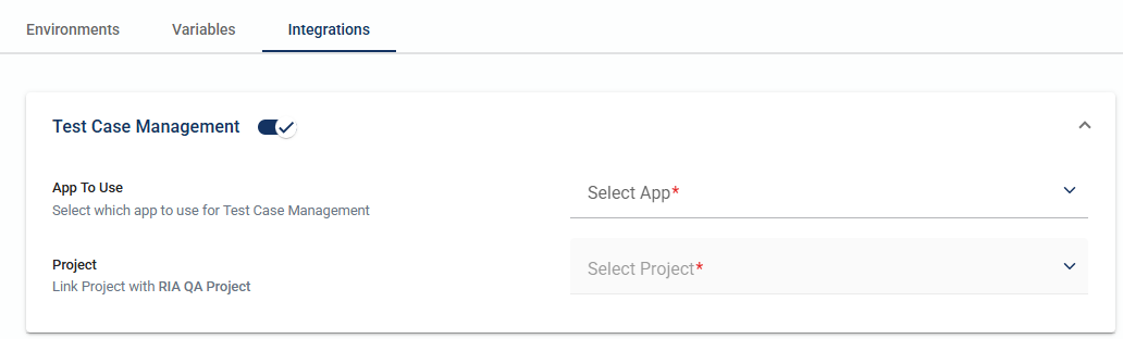 Before confguring your integrations, ensure that you have enabled your test case management and issue tracking applications in the Settings module.