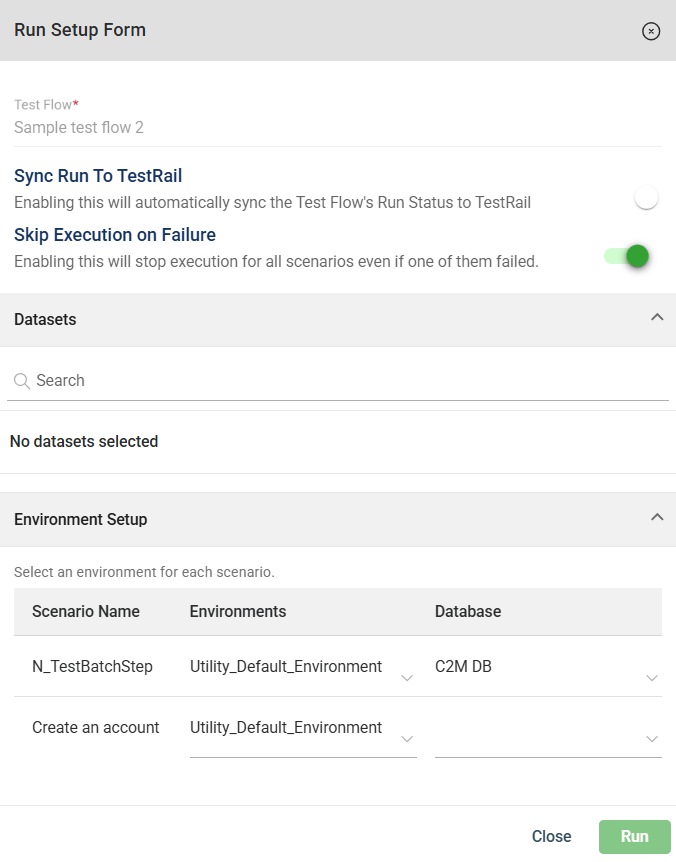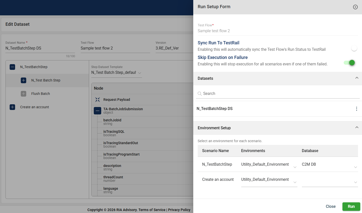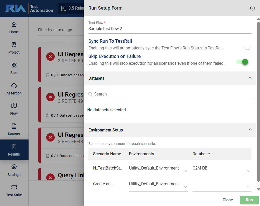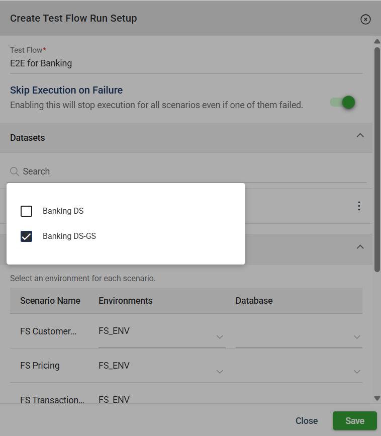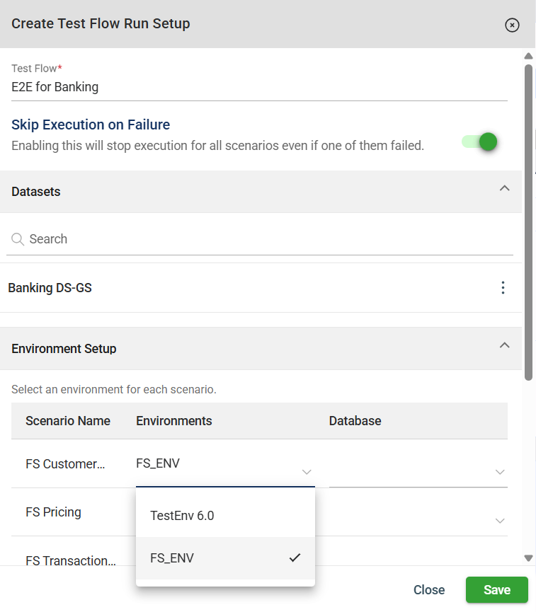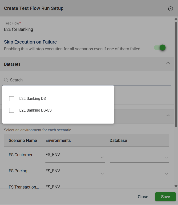 The Test Suite module enables you to organize, manage, and execute multiple test flows within a specific version. It also allows you to associate datasets, configure test environments and databases, and control how and when tests are run.