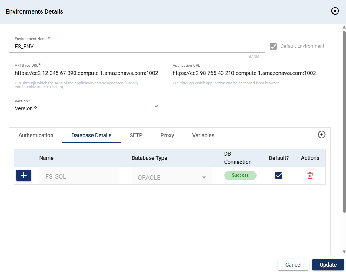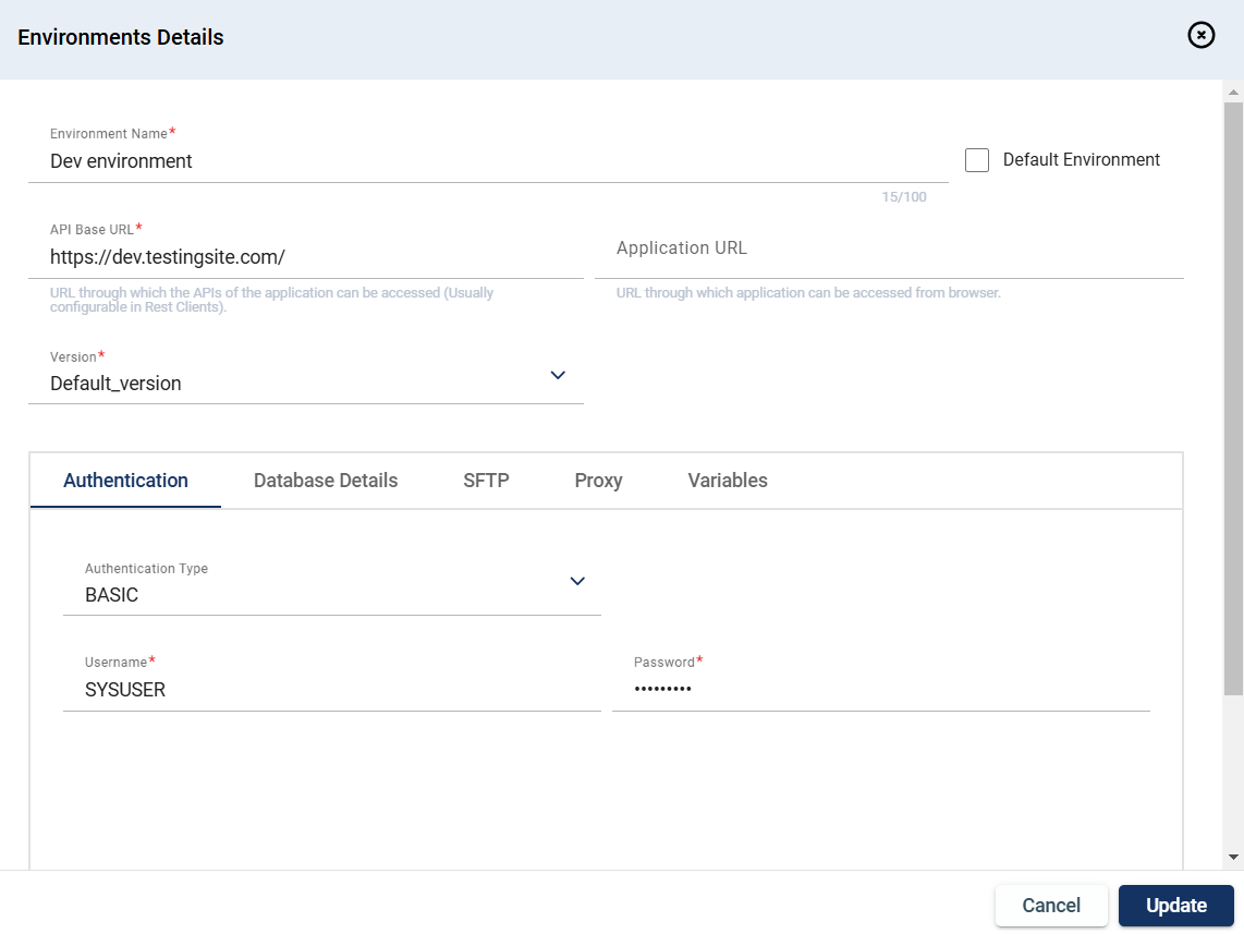 Before running the test, ensure that the testing environment is properly set up and configured. This includes specifying the necessary credentials and database details for accessing the configured environment. For more information, see Environments.