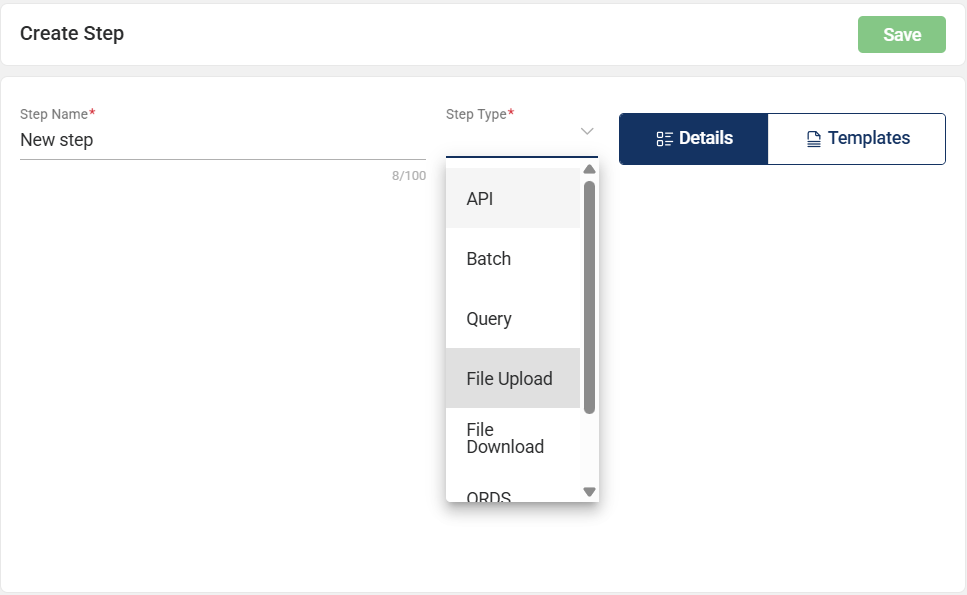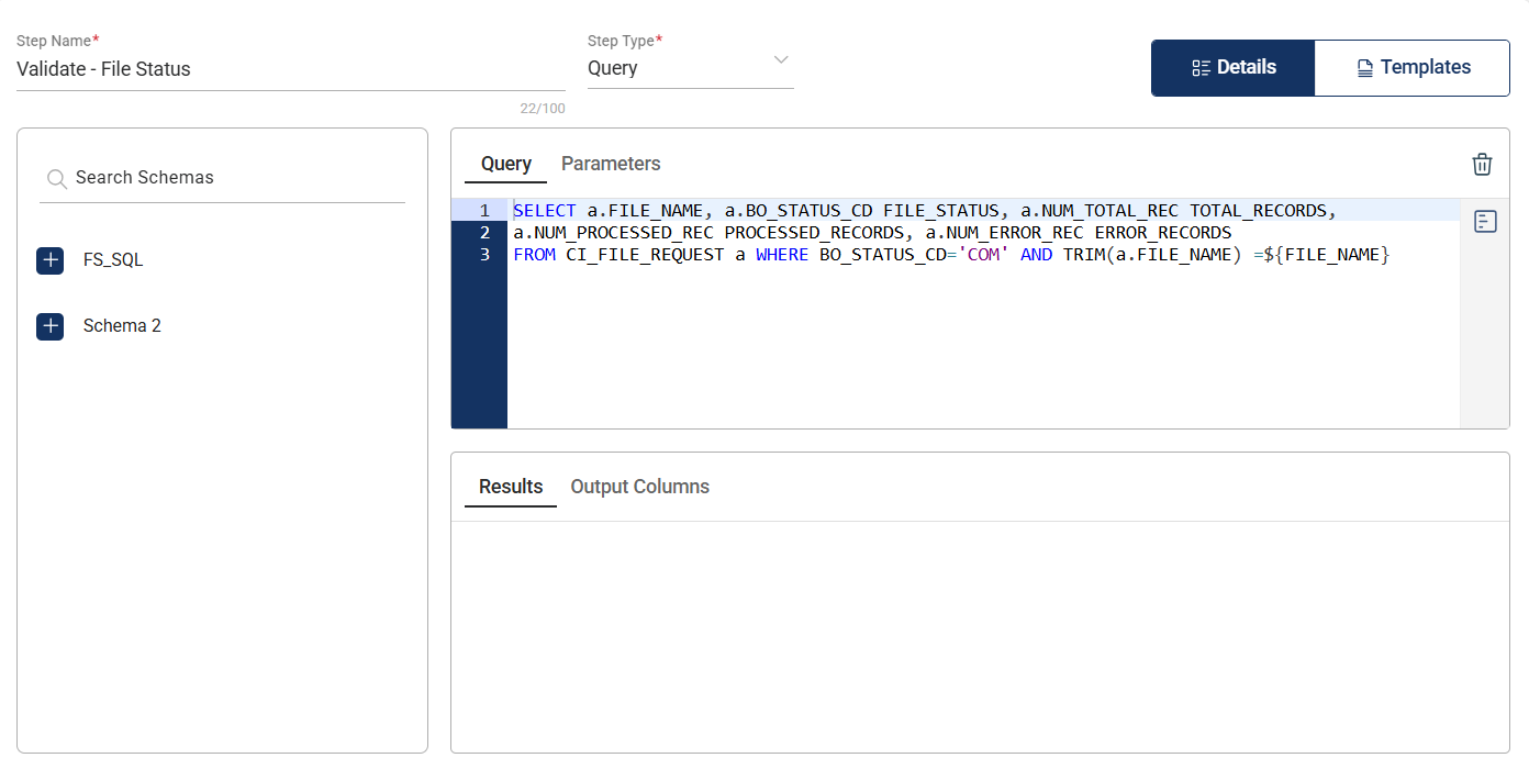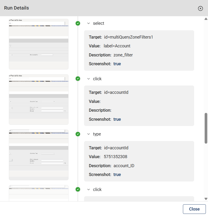 Displays the step status, date and time the step execution began, payloads, and the query if available.
