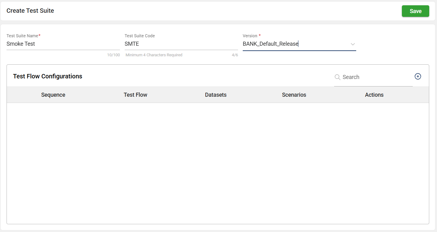 Enter a valid value to the Test Suite Name textbox. The Test Suite Code field is automatically filled with a system-generated code based on the entered test suite name.