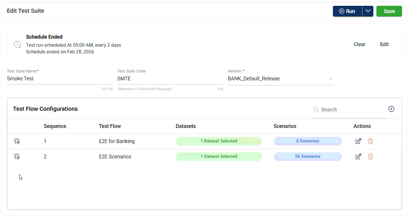 To edit a test suite, select a test suite and make the necessary changes. Click the Save button once done.