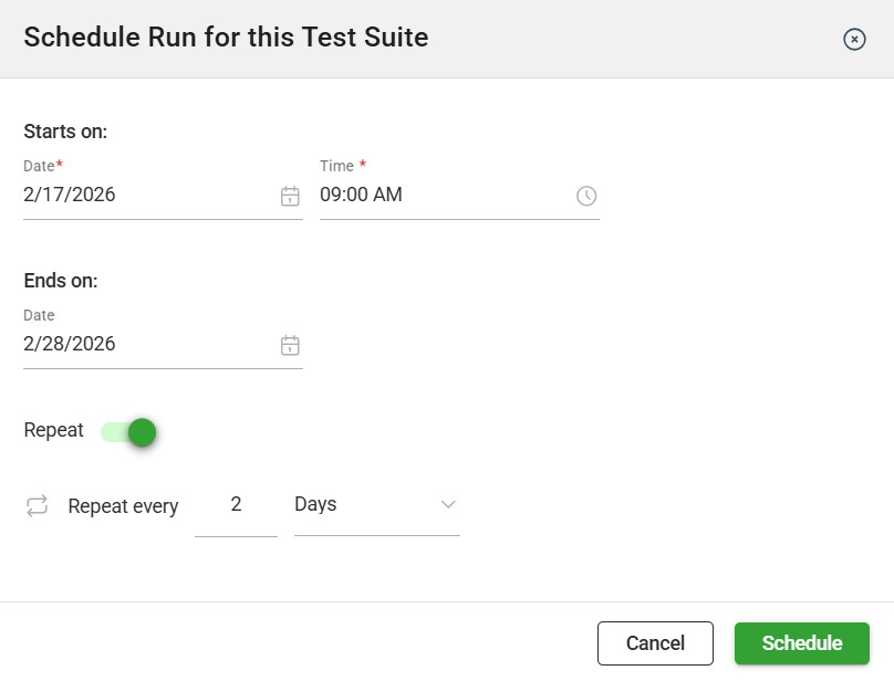 Click the Schedule button to save the configured schedule. To cancel, click the Cancel button.